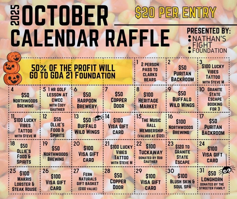 Click the link below to enter into the $20 raffle to have 31 different chances at winning prizes. All proceeds go to Community Foundations.